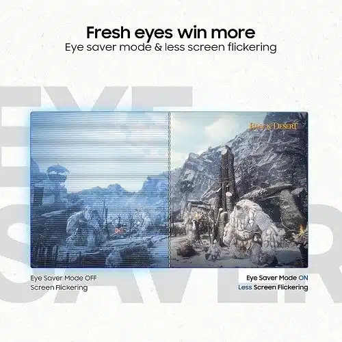 Eye Saver Mode & Less Screen Flickering: Play for even longer. Eye Saver Mode minimizes blue light to help keep your eyes relaxed and comfortable when gaming for extended periods. The Odyssey G3 also reduces irritating and tiring screen flicker, so you can focus longer with less distraction and eye strain.