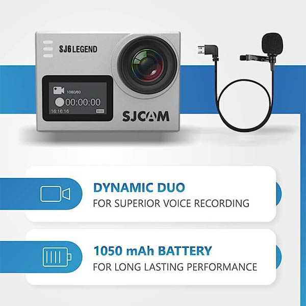 - DYNAMIC DUO – Whether you are recording a concert, short film, or are having friends and family gatherings, SJ6’s external Mic compatibility increases the venues you can use your Legend in.