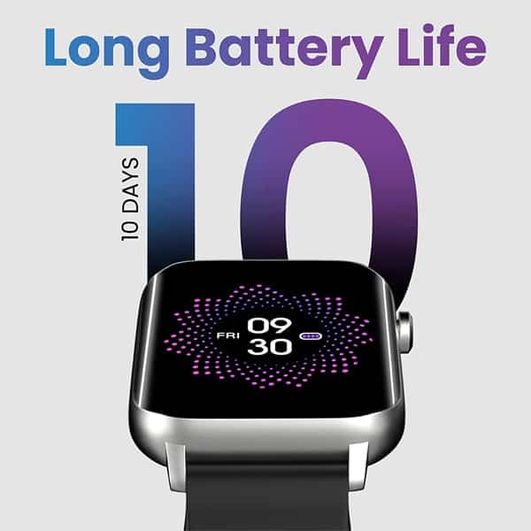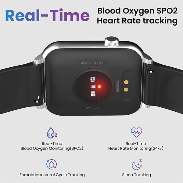 - [Real-time Blood Oxygen SPO2 and Heart Rate tracking] – To keep a track of your health with daily progress reports. Monitor your sleeping patterns with sleep tracking. Female Menstrual Cycle tracking helps you stay stress-free always. BATTERY CAPACITY 230mAh