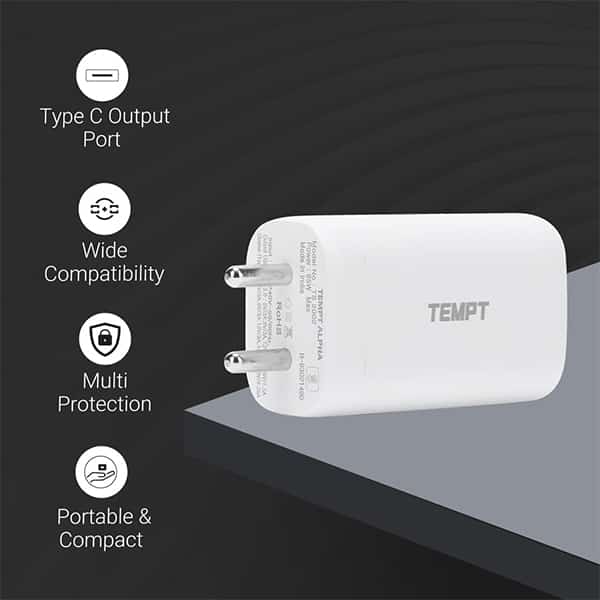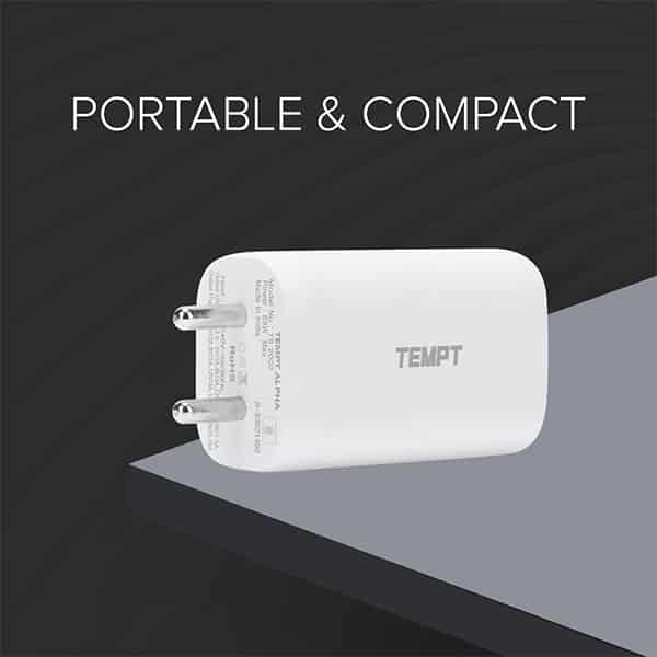 - Latest Gallium Nitride Technology for smart Charging- The latest technology in charging. Tempt Alpha GaN charging keeps the fast charger adapter cool at all times, protecting your phone from overcharging.