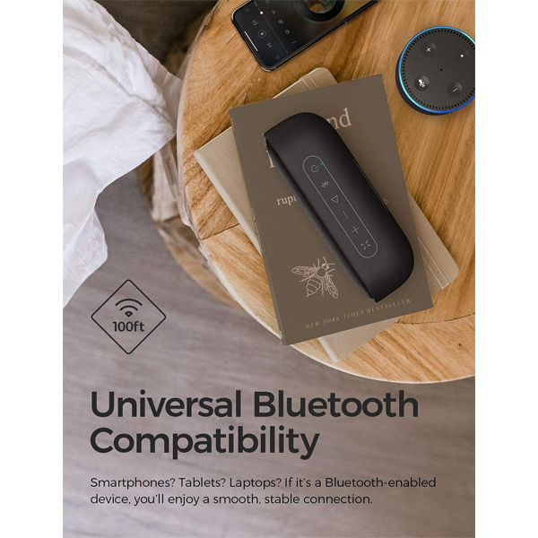 - Bass that Booms: Small speakers usually give small sound. That’s not the case with Tribit’s proprietary XBass technology. At the press of the independent X-Bass button, the bass is amplified to give those low-end bass lines depth and synth and acoustic drums tight punch.