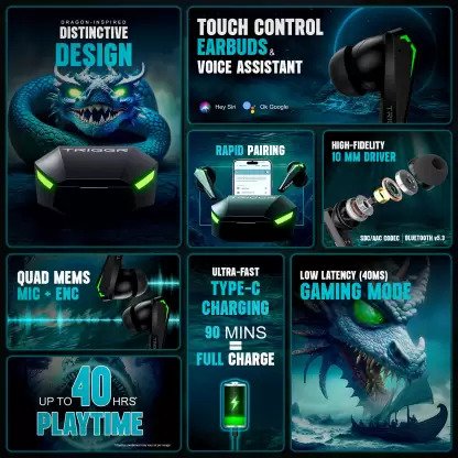 - 40hr battery life for uninterrupted gameplay | Type C fast charging (90Mins = Fully Charged)