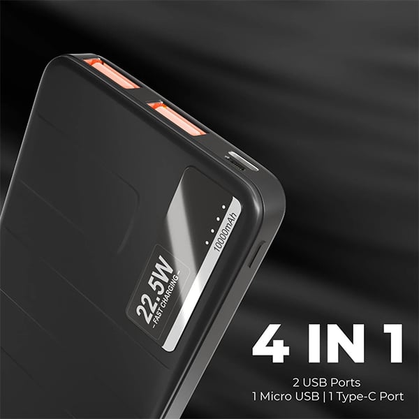 Faster than ever, Ubon PB-X36 PD Master comes with a power-packed 10000mAh battery capacity that lets you charge your device multiple times. With Micro USB and Type-C (DC 5V/3A Max) inputs, and USB and Type-C (DC 5V/3A, 9V/2.2A, 12V/1.67A 20W, DC 5V/3A, 9V/2A, 12V/1.87A 22.5W) outputs, the power bank supports the optimal and fast charging. With 22.5W, this provides QC (Quick Charge) and PD (Power Delivery).