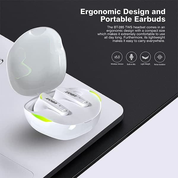 - Ergonomic Design and Portable Earbuds: The BT-285 TWS headset features an ergonomic design as well as a compact size which makes it extremely comfortable to use all day long. Furthermore, its lightweight design makes it easy to carry wherever you need it.