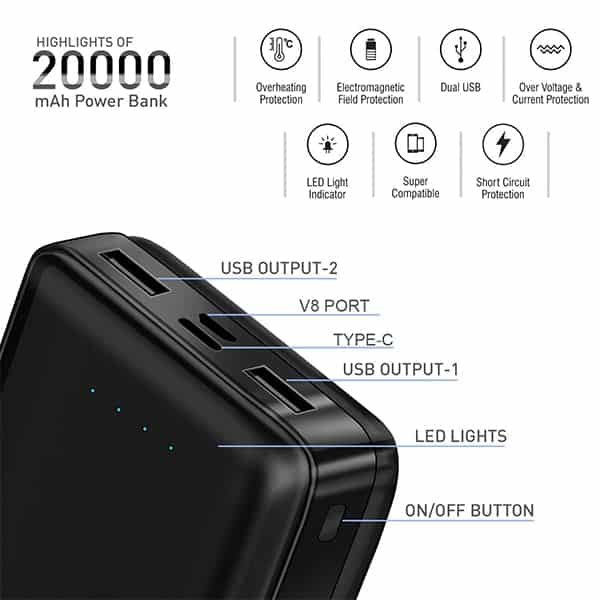- Massive Power: Packed With Massive 20,000 mAh power – Enough Power Backup For 3 days