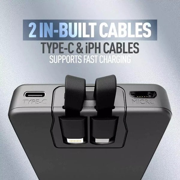 - Multiple Cable Options: This power bank includes Type-C, V8, and iPhone Lightning cables, eliminating the need for you to carry extra cords. It’s a convenient all-in-one solution for charging various devices.