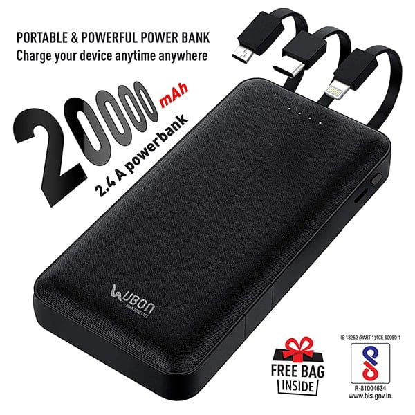 - 3 IN 1 MICRO USB, TYPE C & LIGHTENING CABLE WITH USB: The offered power bank is designed with triple charging cables along with a USB Output Port (2.0A) to charge multiple devices at the same time by connecting with their standard charging cables. Moreover, it supports charging via Micro USB port while discharging.