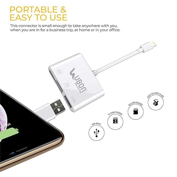 - Universally Compatible OTG connector: The WR-496 lightning OTG connector is universally compatible with iOS devices. Furthermore, UBON’s iPhone OTG connector ensures the total safety of the device when sharing music, videos, and large amounts of data.