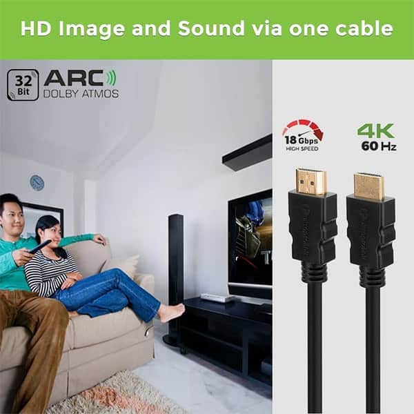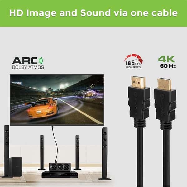 - HD Image & Sound via one cable : this HDMI cable Supports Ethernet bandwidth up to 18Gbps to achieve the highest transmission rate. 32-bit Audio Return Channel (ARC) for HD sound. Perfect to pair with IP enabled devices without a separate Ethernet cable.