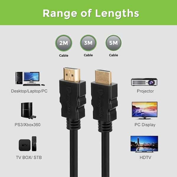 - Range of Lengths : Come in various lengths 2m,3m,5m,6.5ft,9.8ft,16.4ft. This Long HDMI cable is convenient & compatible with streaming devices like Apple TV, Home Theatres, Flat TV, CD/DVD/Blu-ray players, Fire TV, PS4/3, Xbox, Nintendo, Gaming consoles, Computers, 4K/HD TV, monitors, displays or projectors & MHL enabled Mobile phones.