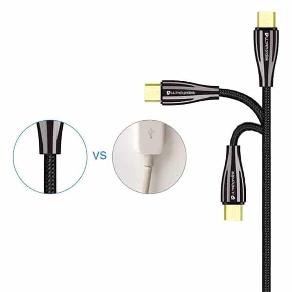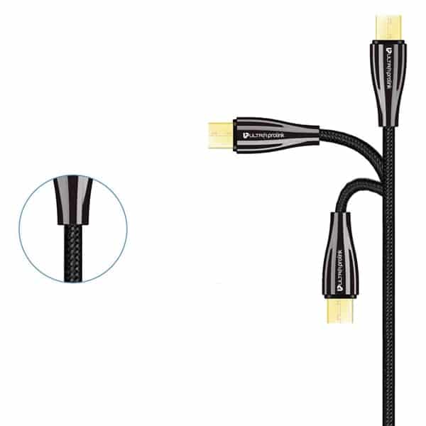 UltraProlink has always been at the forefront in the cable category and has market leadership due to its wide range, sturdy build & use of new age materials. Another first-to-market initiative by the brand is the ZYNC series. ZYNC series USB cables offer mobile users a whole new level of functionality. Without any compromise on specs, this family of cables is a must have accessory for smartphone owners wanting to maximize charge time and efficiency. ZYNC cables come in the three most popular varieties of connectors – Micro USB, Lightning & Type C. New age dual materials PVC combined with Nylon not only add finesse but ensure a tangle free experience. Guaranteed to work with all iOs versions. The connectors are made of a special Zinc Alloy making the cable not only tough at the joints but also giving it premium look.