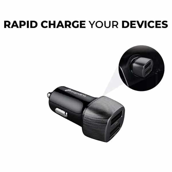 - Premium Carbon Fibre Finish : Next generation carbon fibre finish in a compact housing design – perfect match to your plush car interiors. Will fit perfectly into the charging socket