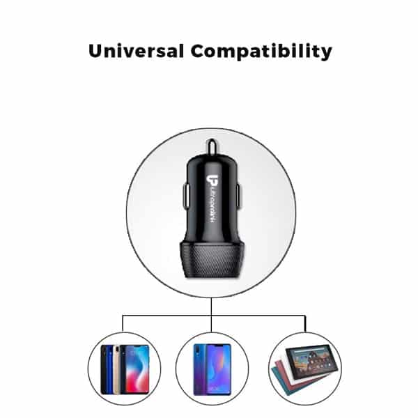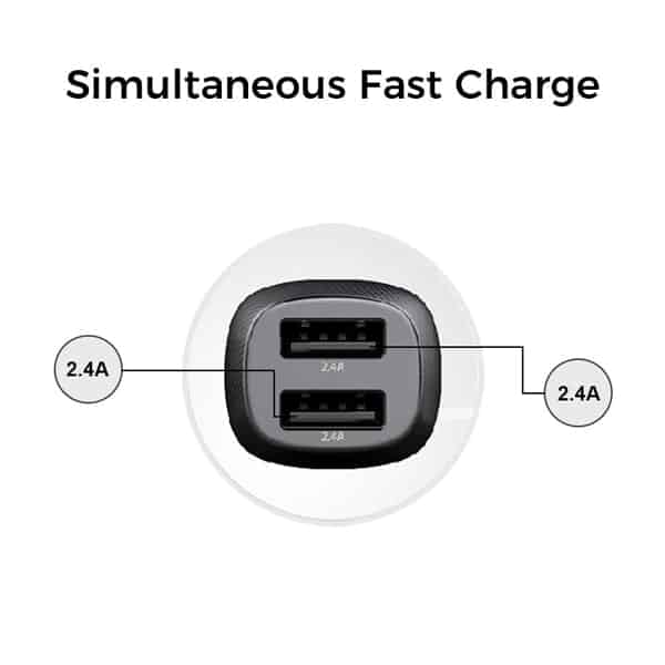 - Simultaneous Fast Charge : Unlike normal car chargers where only one port gives out a fast charge, the Mach 24 allows you to fast charge any two devices at 24W / 4.8A. So you can charge your smartphone & tablet or 2 smartphones or 2 tablets at the same time.