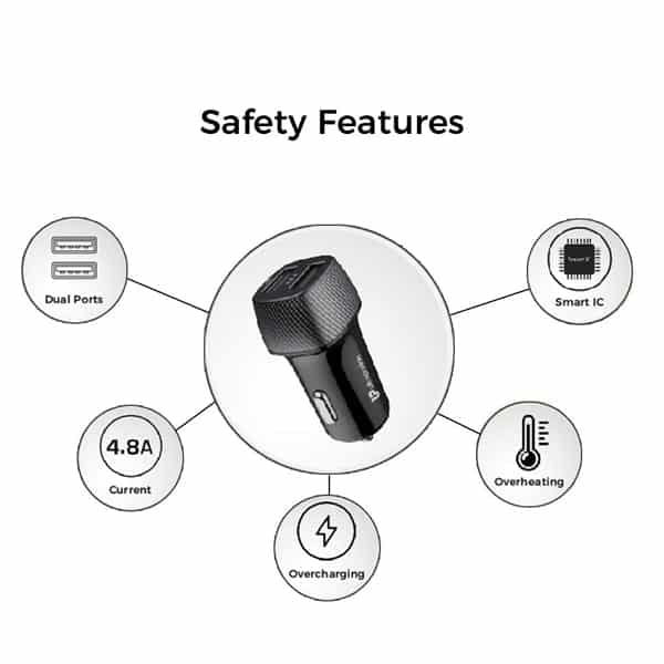 - Safety Features : Built-in Smart IC safeguards & protects your devices against excessive current, overheating, and overcharging.