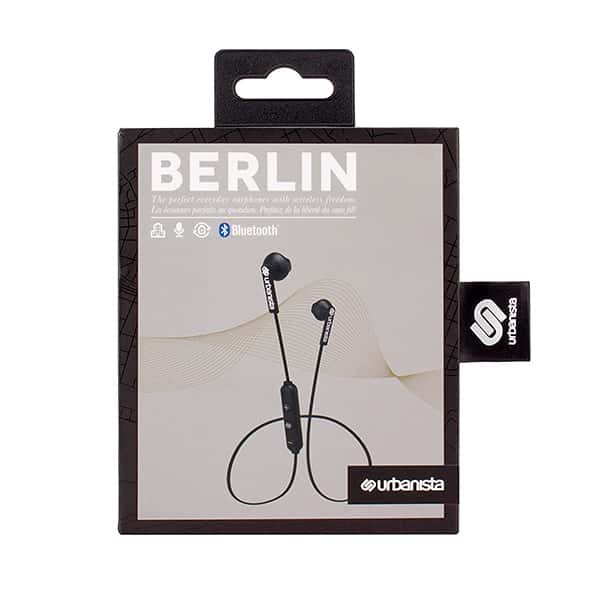 - URBANISTA BERLIN is the ideal everyday premium earphone for wireless freedom. User-friendly Bluetooth earphones with a sleek design and a comfortable fit. Charge it little over an hour and you’re all set to cruise the streets with your favourite tunes for 4.5 hours. Easy to bring, easy to use and easy to enjoy!Berlin has soft silicone earbuds and silicone wing GoFit earbud-replacements for a snug and more secure fit. Their practical in-line remote features a mic and volume controls, so there’s no need to fumble for your device to answer calls or manage your music on the go. For extra functionality, the earphones can be joined together magnetically.