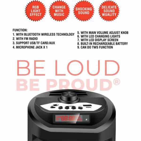 - Model Name: Karaoke Mic Party Box Speaker SP-6400 with Mic 16 Watt with LED Light