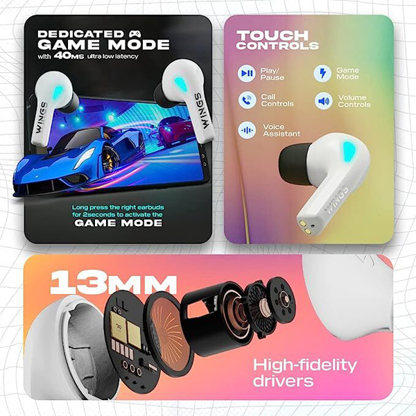 - EXTRA MARKS FOR THE SMARTS: Connect your headphones with our cutting-edge Wings Sync App and enjoy the variety of added benefits. You may personalise the touch controls on the Wings Sync, change the latency, find your earbuds, and so more more