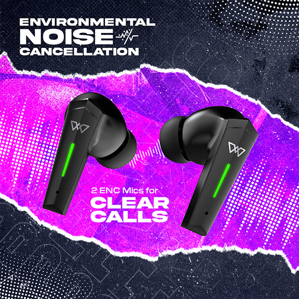 - [CLARITY UNLIKE ANY OTHER]-Help your squad in a more fulfilling manner by commanding your way to victory with the best mics in town. The Environmental Noise Cancellation in our wireless gaming earbuds mics provides the backup for any atmosphere.