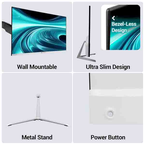 - Ultra-slim bezel: This slim monitor which can easily be mounted on a metal stand is designed with an ultra-slim bezel for wider image coverage on the screen.