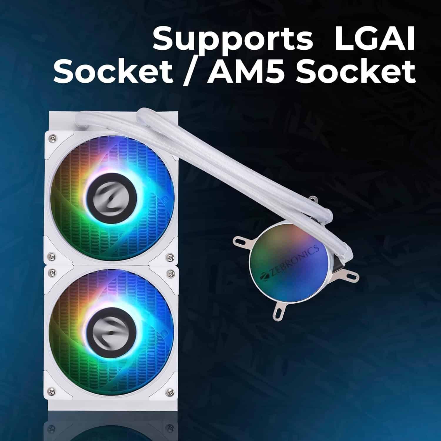 - One of the hallmarks of this AIO cooler is its broad compatibility, supporting the latest LGA1700 & AM5 sockets that can offer innovative cooling solutions. This cooler also supports LGA 115X/1200/1366/1700/2011/2066 for Intel and FM3/FM2/FM1/AM2/AM2+/AM3/AM3+/AM4/AM5 for AMD