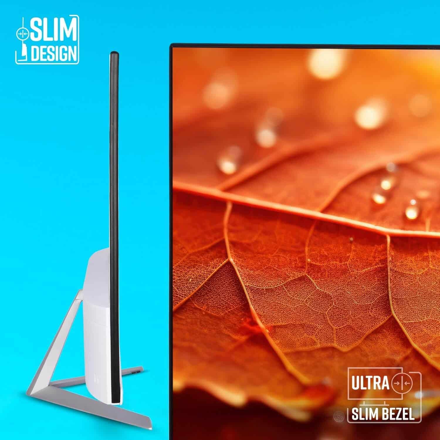 - This slim monitor which can easily be mounted on a metal stand is designed with an ultra-slim bezel for wider image coverage on the screen.