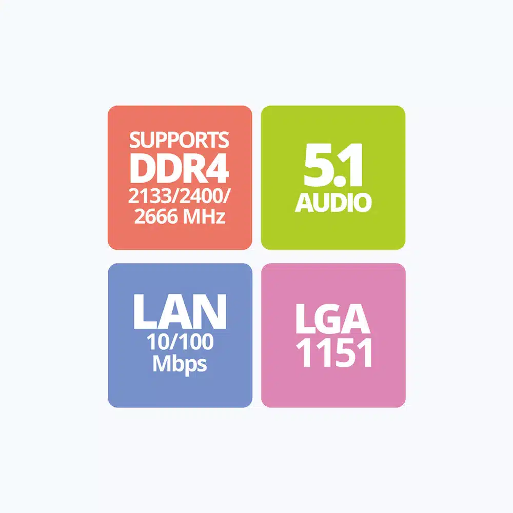 - LGA1151 socket supports i3/i5/i7 series CPUs