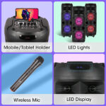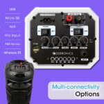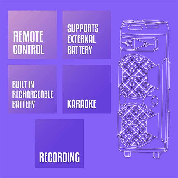 - The speaker has LED lights that change the ambiance and feel in perfect fusion with powerful sound. It also has multi-connectivity options like BT/USB/ Micro SD/ AUX/ MIC Input along with a built-in FM Radio.