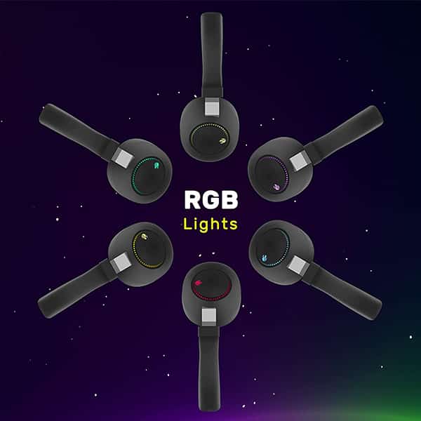 Zeb-Duke is a wireless headphone with a mic that is an up on style with comfortable ear cushions, adjustable headband, and RGB lights
