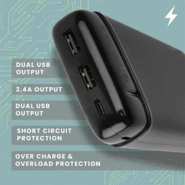 ZEB-MD20000G1 is a Made in India 20000 mAh power bank that comes with Type C & Micro USB input, Dual USB output, LED indicator along with protection for overcharge, overload, & short circuit protection.