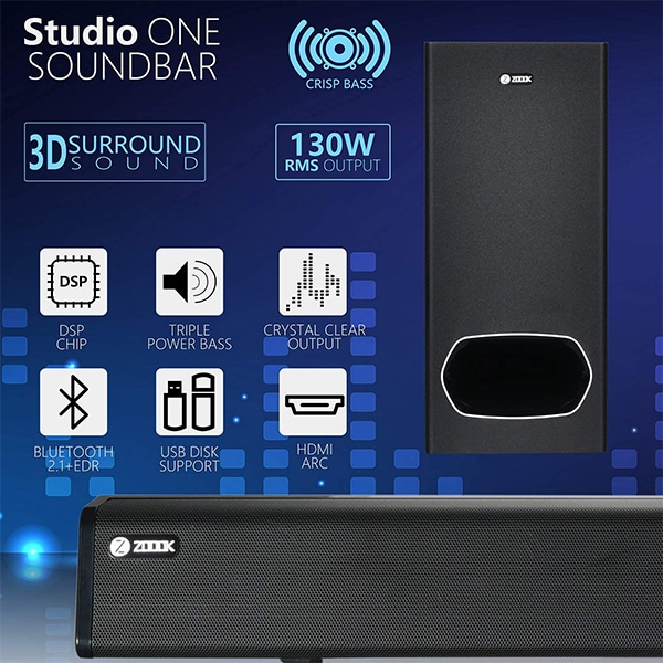 - 2.1 channel sound with cinematic performance and sleek premium design