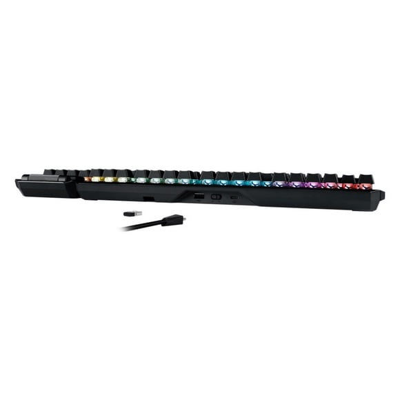 ROG RX Optical Mechanical Switches: RX Red and RX Blue switches feature centralized lighting and provide consistent wobble-free keystrokes with near-zero debounce delay Lag-Free Connection: Ultrafast 1 ms response in both wired or 2.4 GHz wireless modes Outstanding Battery Life: 4000 mAh battery provides up to 47 hours of use (full-size with lighting on), and keyboard includes built-in LED battery-level indicator Fast Charge & USB Passthrough: Easily switch between USB-C fast charging and USB Type-A passthrough Wireless Aura Sync: Synchronized light effects – even in wireless mode Ergonomic Design: Detachable magnetic wrist rest for comfortable marathon gaming sessions Anti-Ghosting: N-Key Rollover Polling Rate: 1000Hz Macro Keys: All keys programmable (except for Fn, Num Lock, Caps Lock, Scroll Lock, Windows, Left-ALT) Macro Recording: On-the-fly recording support Cable Type: Braided fiber, Type-C to Type-C Cable Length: 1.8m Onboard Memory: 5 customizable profiles & 1 default profile Basic Hotkeys: Profile Switch: Fn + profiles Software: Armoury Crate Media Keys: |