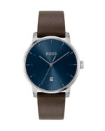 Hugo Boss Mens Dean Silver Stainless Steel Quartz Date Blue Dial Brown Leather Band Watch