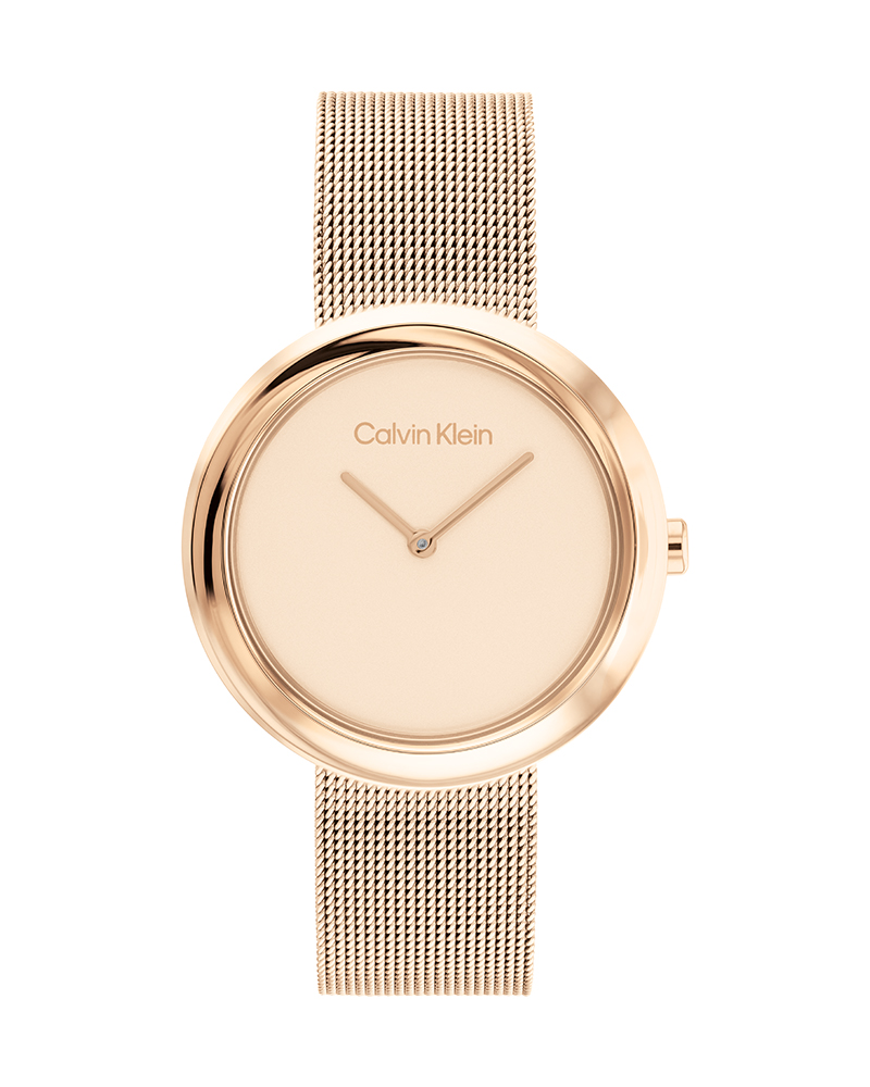 Calvin Klein Twisted Bazel Womens Rose Gold Stainless Steel Quartz Rose Gold Dial Rose Gold Mesh Stainless Steel Bracelet Watch