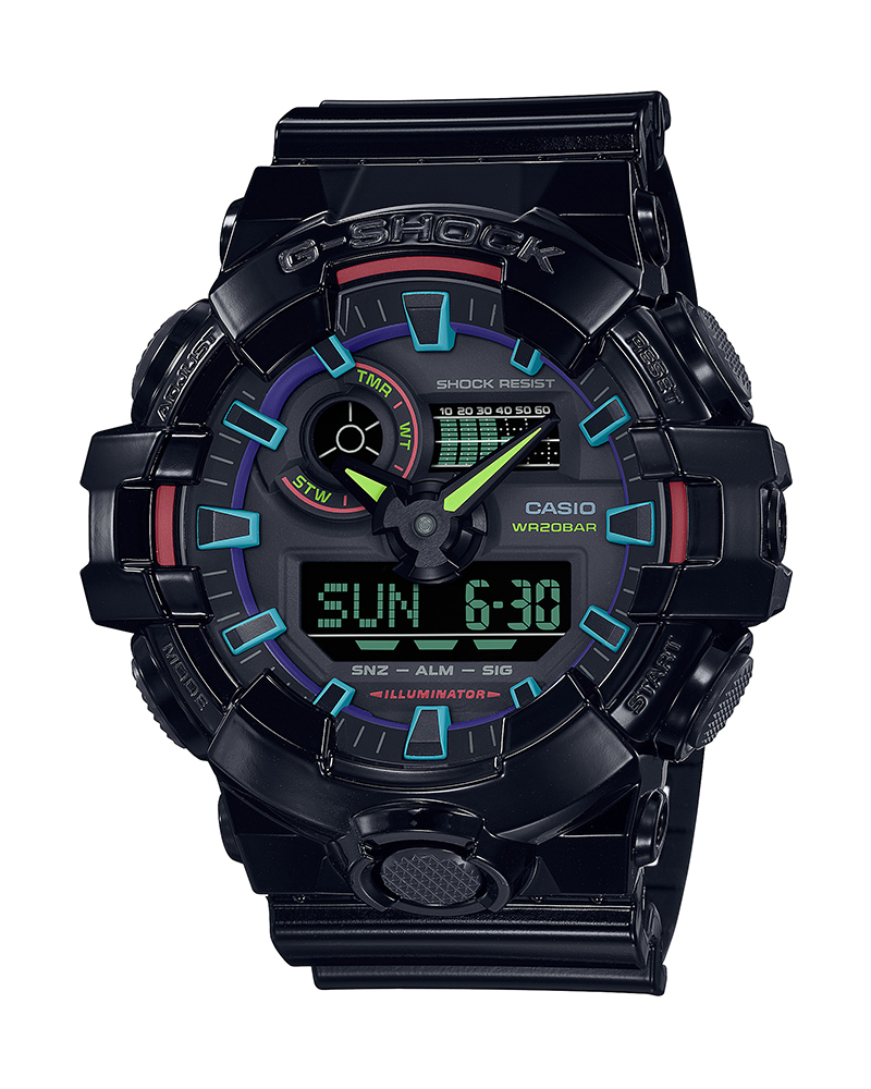 Casio G-Shock Mens Black Resin Case Round Analog+Digital World Time Stop Watch Calender (to year 2099) 5 Daily Alarm LED Light (super illuminator) Multi-Functions Black Resin Strap Watch