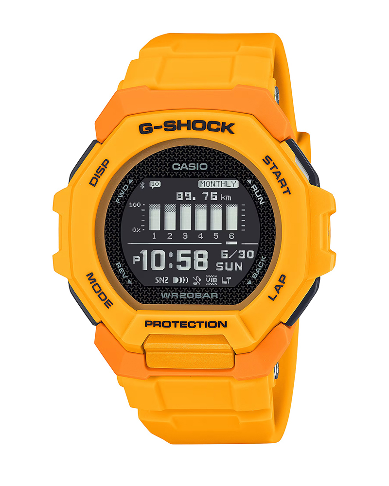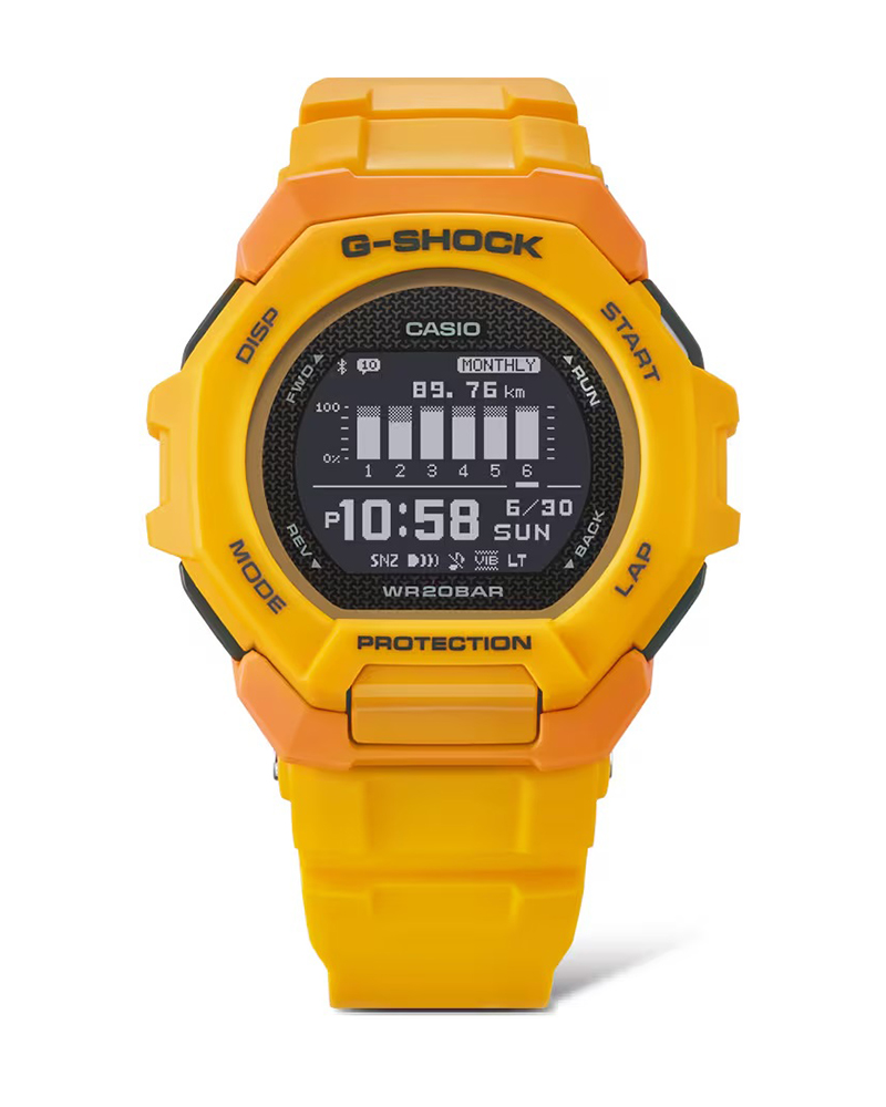 Casio G-Shock G-Squad GBD-300 Series (Shock Resistance) Mens Round Digital Yellow Resin Case Bluetooth, World Time, Stop Watch, Timer, LED Light, Calendar, Power Saving, Sensor, Multi-Functions Yellow Bio-Based Resin Band Watch