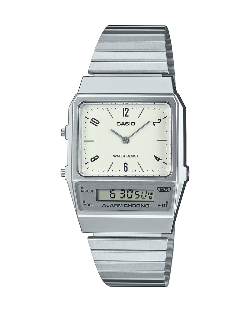 Casio General Vintage Mens Silver Resin Case Round Analog+Digital World Time, Stop Watch, Calendar, Multi-Function Silver Stainless Steel Bracelet Watch