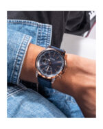 Guess Mens Navy Blue Stainless Steel Case Navy Blue Dial With Date Navy Blue Geniune Leather Band Watch