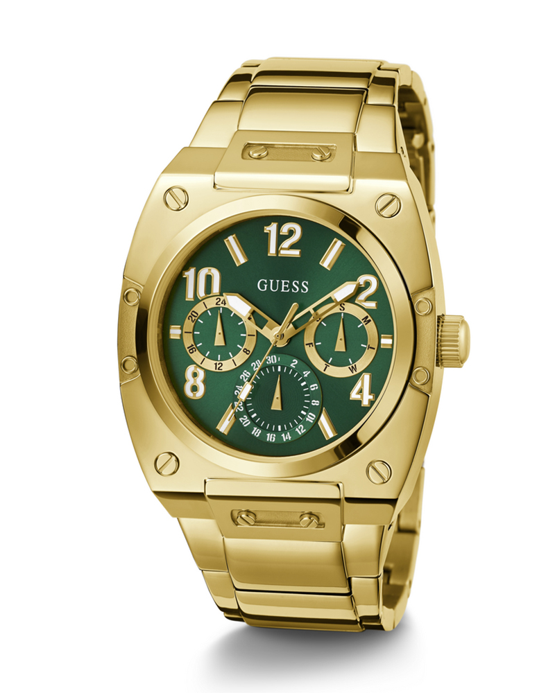 Guess Prodigy Mens Gold Tone Stainless Steel Case Green Dial Gold Tone Stainless Steel Bracelet Watch