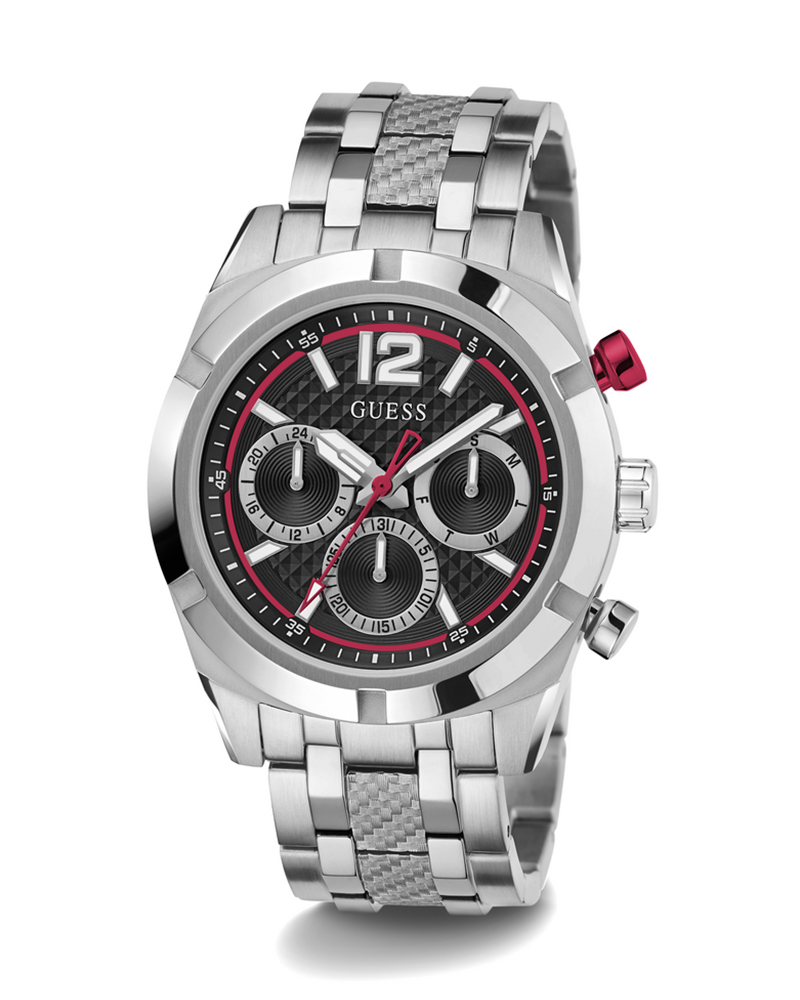 This new sport style is hard to resist with its chrono-look multi-function textured dial and innovative textured bracelet