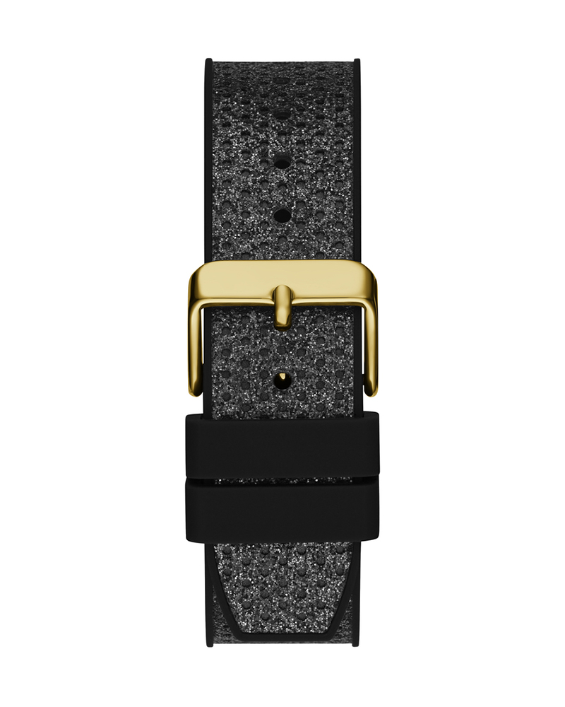 Guess Asteria Womens Gold Tone Stainless Steel Case Multi Dial Black Glitter Silicone Strap Watch