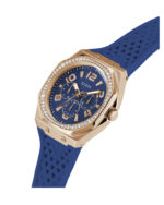 Add some zest to your look with this trendy new sport style featuring a crystal bezel and triangle cut thru details on a silicone strap.
