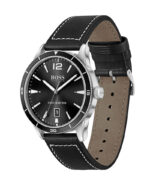 Hugo Boss Drifter Mens Silver Stainless Steel Quartz Date Black Dial Black Leather Strap Watch
