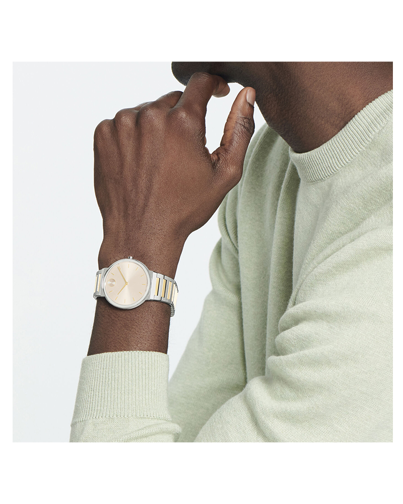 Movado Bold Horizon Stainless Steel Silver Case Quartz Analog Sapphire Crystal Taupe Dial With Index Two-Tone Stainless Steel Bracelet Watch