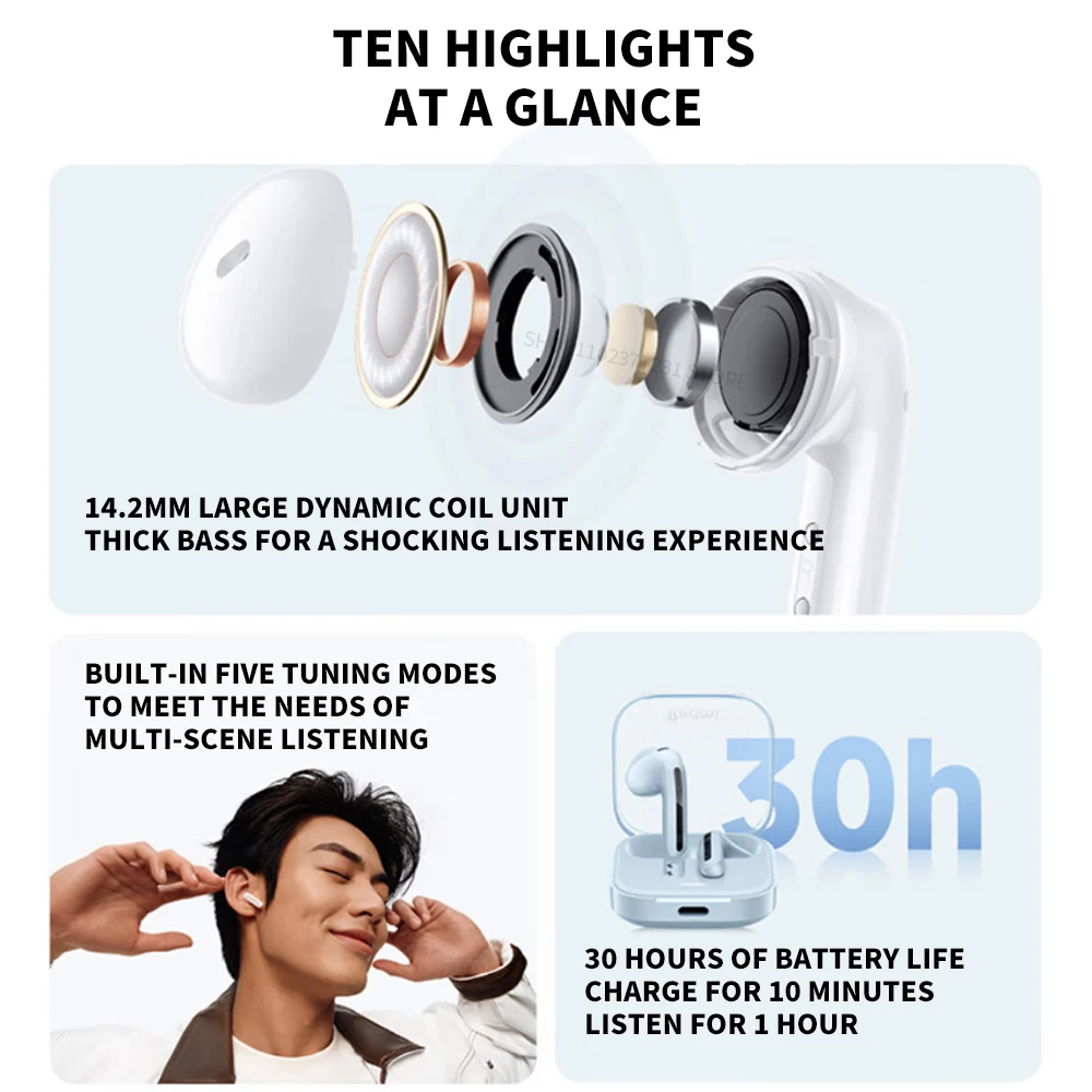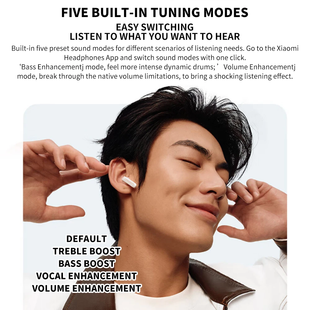 Enjoy rich, immersive sound driven by a large dynamic coil unit, professionally tuned by the Xiaomi Audio Lab to deliver deep bass, clear vocals, and balanced details. With five built-in tuning modes, you can easily switch sound profiles to match music, calls, gaming, or daily listening through the Xiaomi Earbuds app.