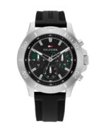 Tommy Hilfiger Mens Silver Stainless Steel Quartz Calendar Black Dial Black Silicone Strap Watch