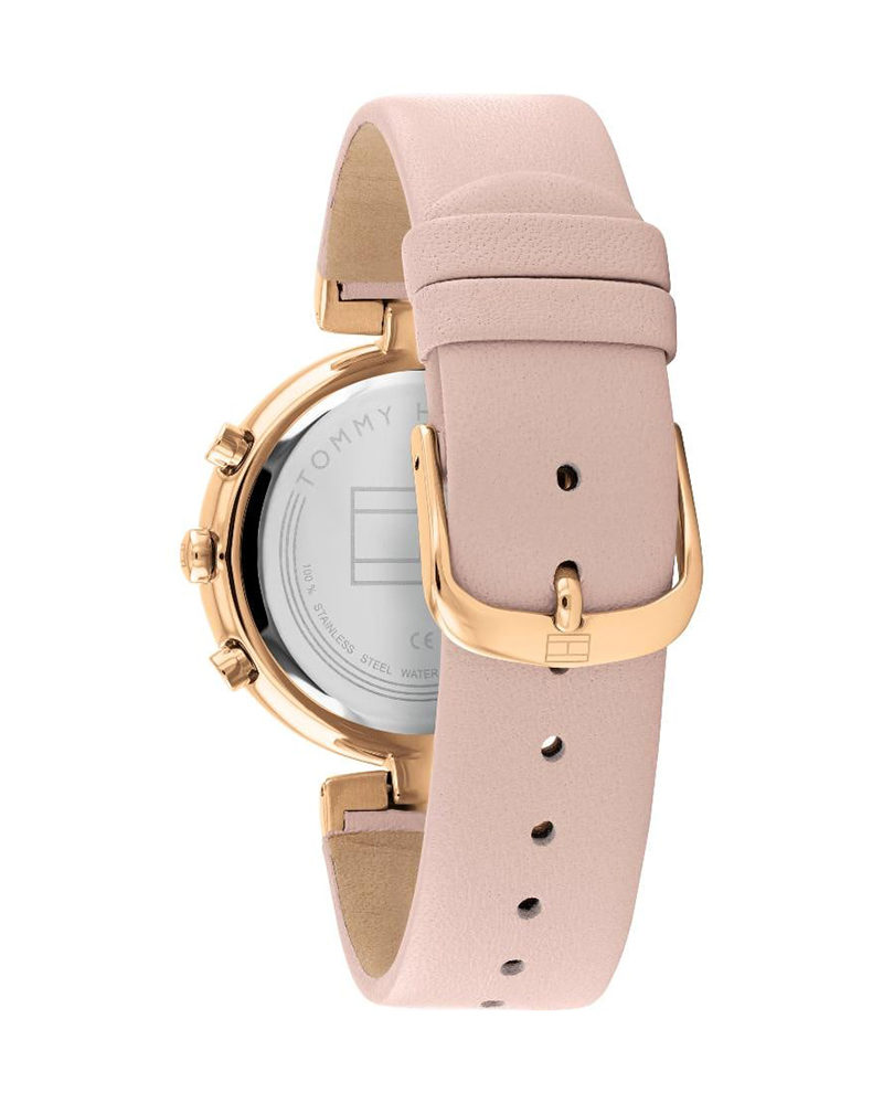 Tommy Hilfiger Luna Womens Rosegold Stainless Steel Quartz Multi-Function Pink Dial Pink Leather Band Watch