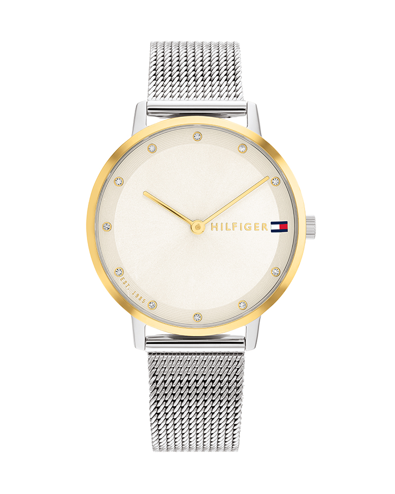 Tommy Hilfiger Womens Silver Stainless Steel Quartz Cream Dial Crystals Silver Mesh Stainless Steel Bracelet Watch