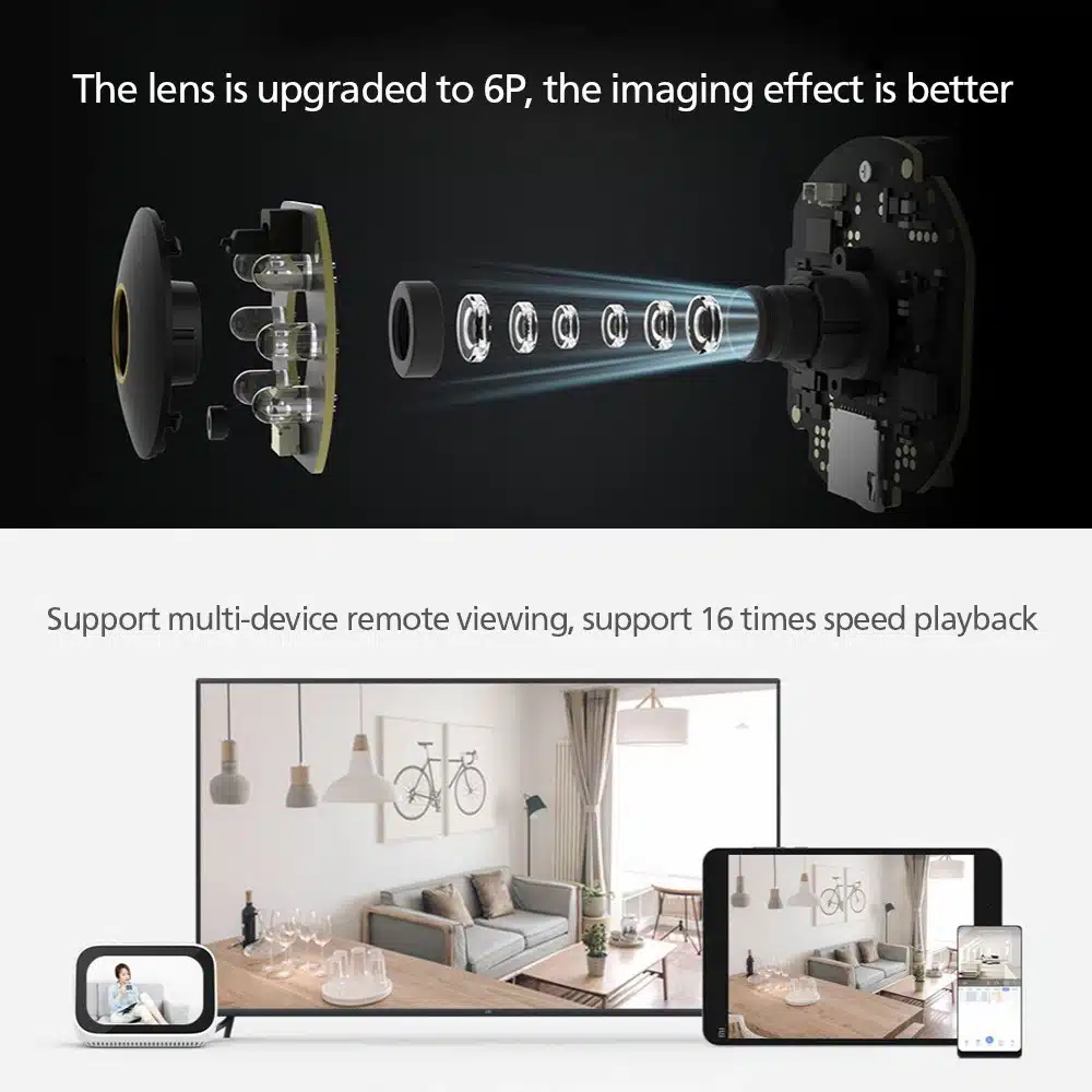 Smart AI human detection filters out false alarms caused by pets, shadows, or lighting changes, ensuring you receive accurate notifications only when needed. Real-time two-way audio lets you communicate seamlessly with family members, as if you were at home, while integrated Mi Smart Clock support allows instant video viewing.