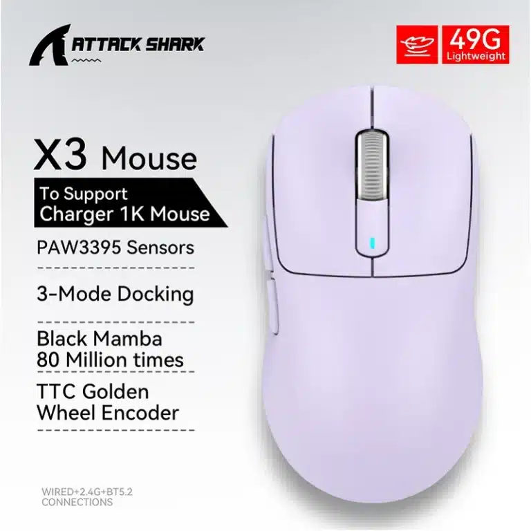 Attack Shark X3pro X3 Wireless Mouse, Macro Gaming Mouse,Lightweight Mouse,PixArt PAW3395 650IPS 26000dpi,Mouse for pad/pc/mac