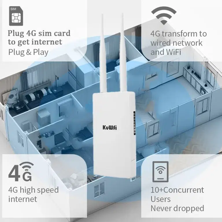 KuWFi Waterproof 300Mbps Outdoor 4G LTE WiFi Router for IP Camera
